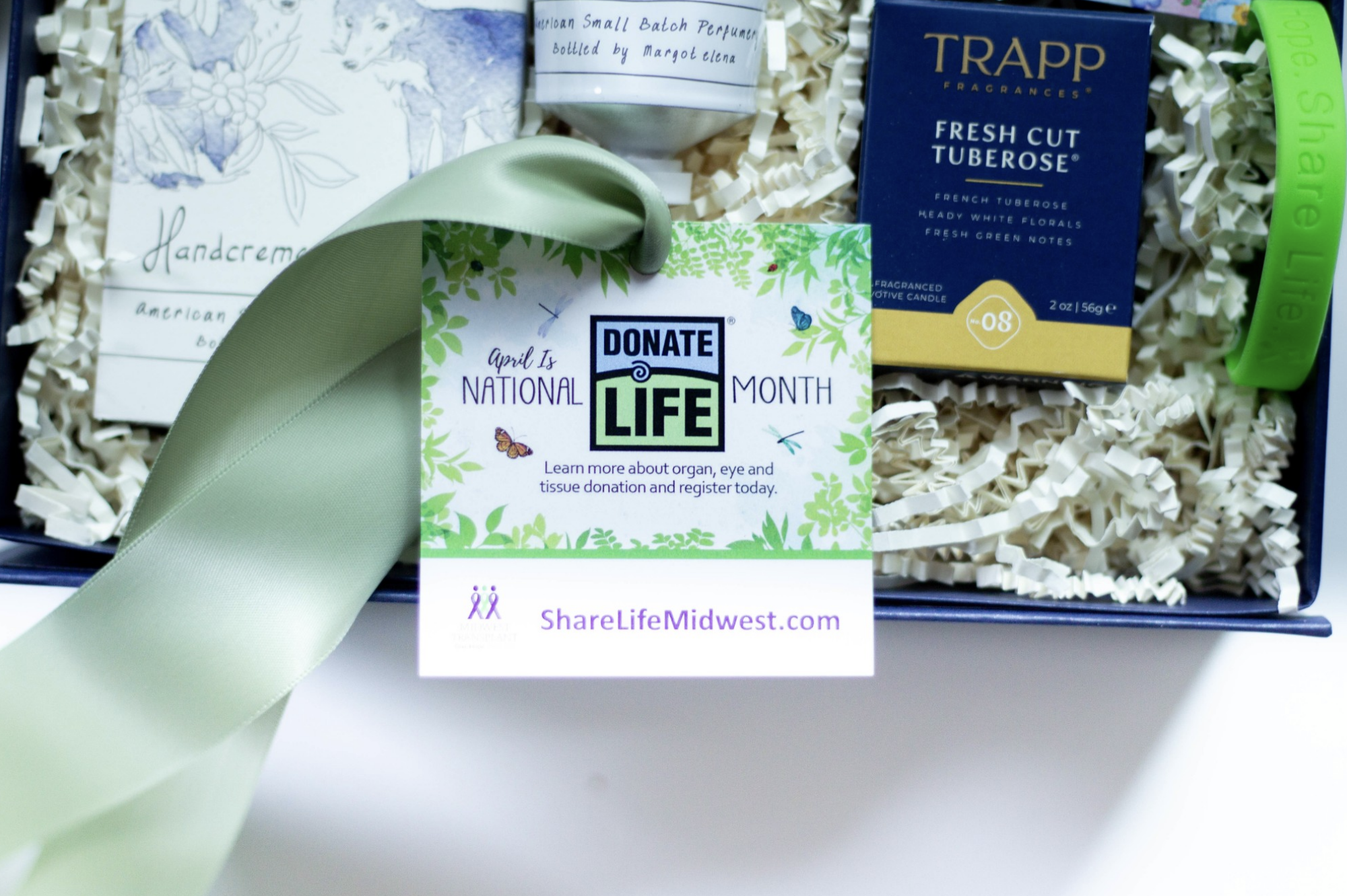 Back in 2021, to coincide with the Garden Theme of the National Donate Life Campaign, we curated a gift filled with fresh and inspiring items. Each donor received a candle from Trapp Candle Co., an Air Plant or a Mini Succulent (with plant care instructions), seasonal plant seeds from local favorite, Shop Verdant, and a Midwest Transplant Network-branded bracelet and green ribbon pin. The gift suite was topped with a beautiful green ribbon, tying the MWTN brand colors into the final presentation.